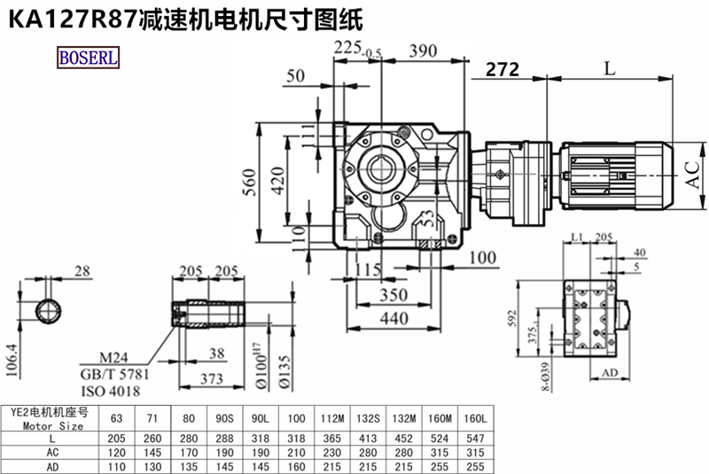| 齒輪減速機 | KA128RF88Y160M4 | KA128RF88AG160M4 | KA128RF88YVPEJ100L4 |